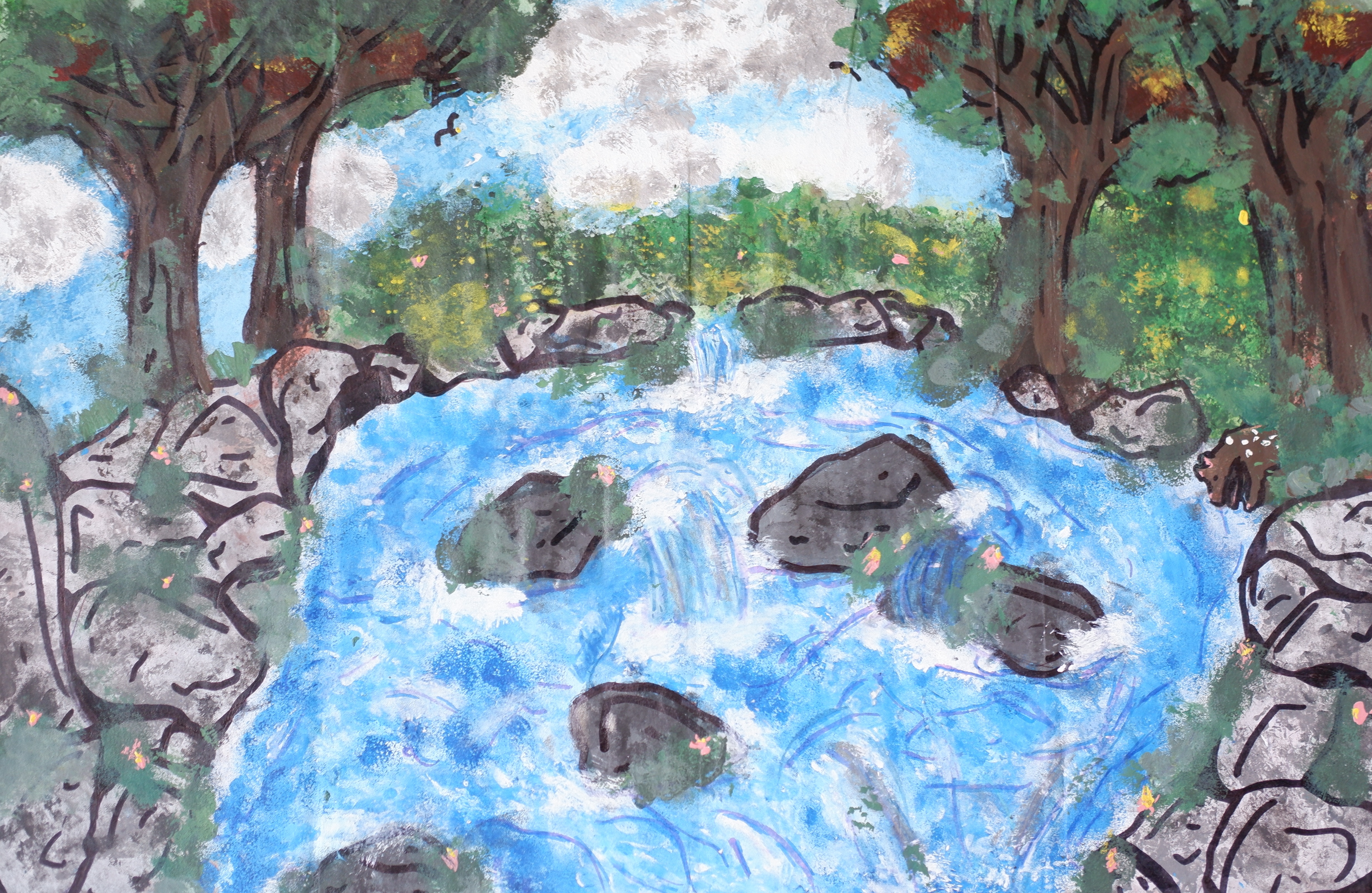 私は、母との思い出を思い起こすためにこの絵を描きました。母は少女だったとき、リラックスするためにワオ アクアに行ったことをかつて私に話してしてくれたことがあります。母のその時のことを想像してこの絵を描きました。